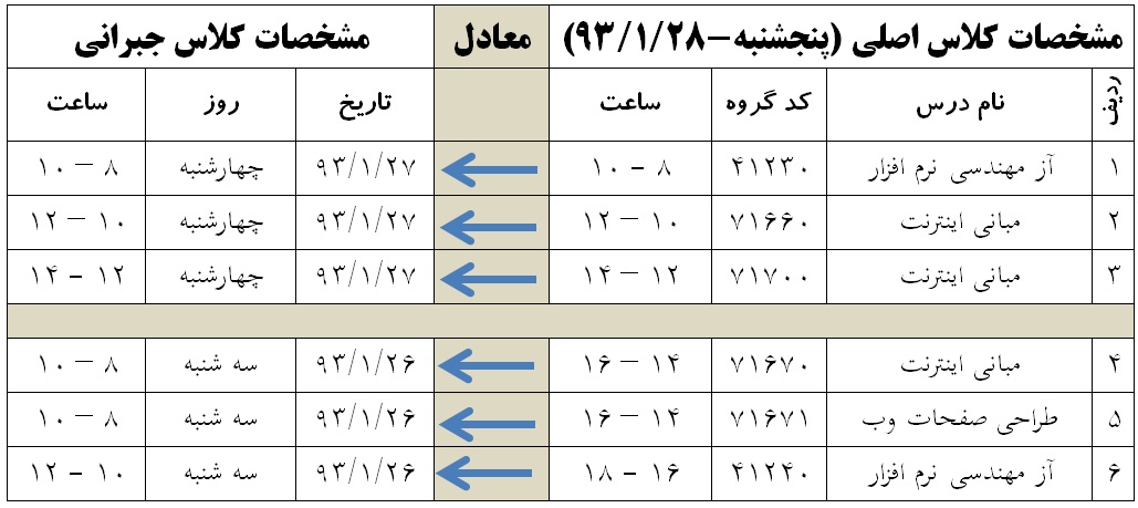 تاریخ اعتراض و تحویل پروژه درس مبانی اینترنت دوشنبه 93/03/12 از ساعت 12